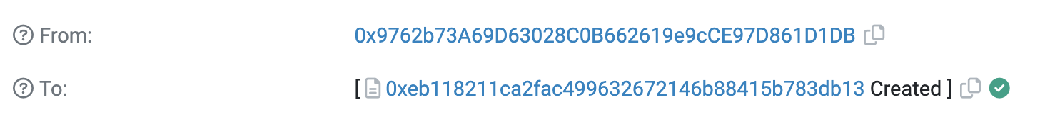 - You can view the contract on Etherscan by clicking the message in the terminal. You an view the address of the created contract and the original contract in Etherscan.