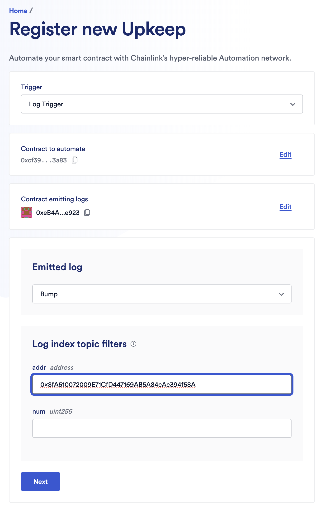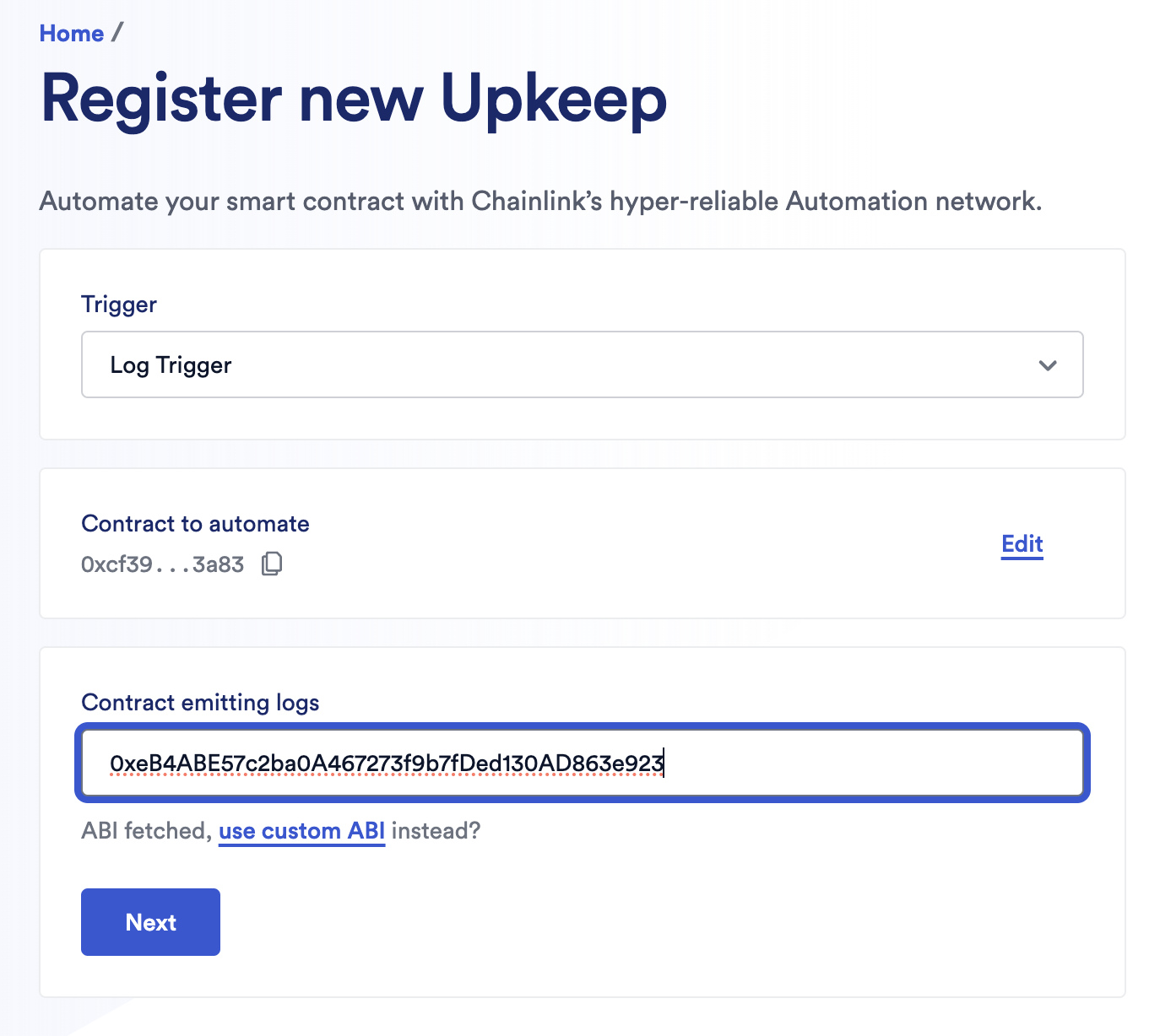 Upkeep name: This will be visible in the Chainlink Automation app.
